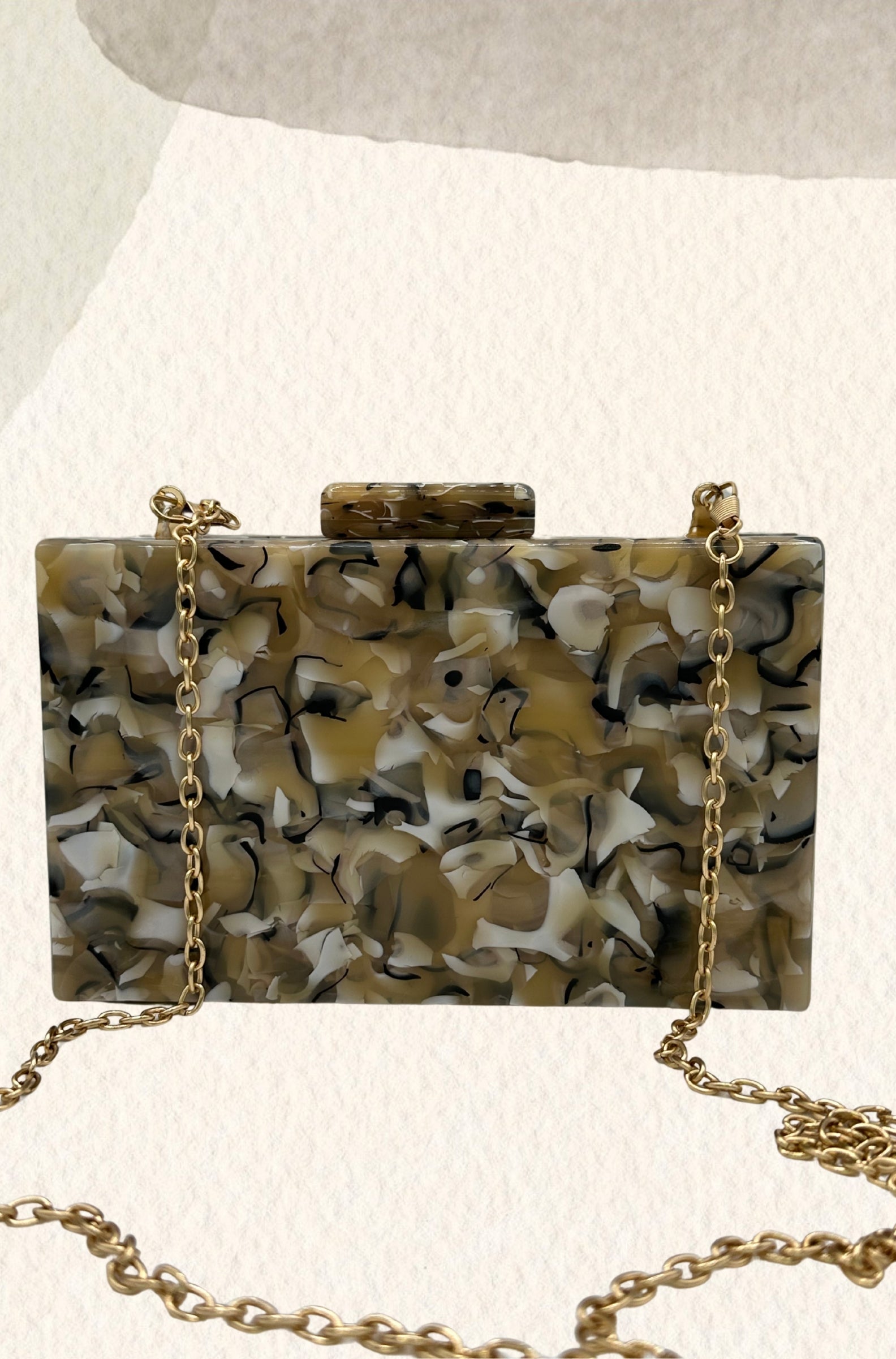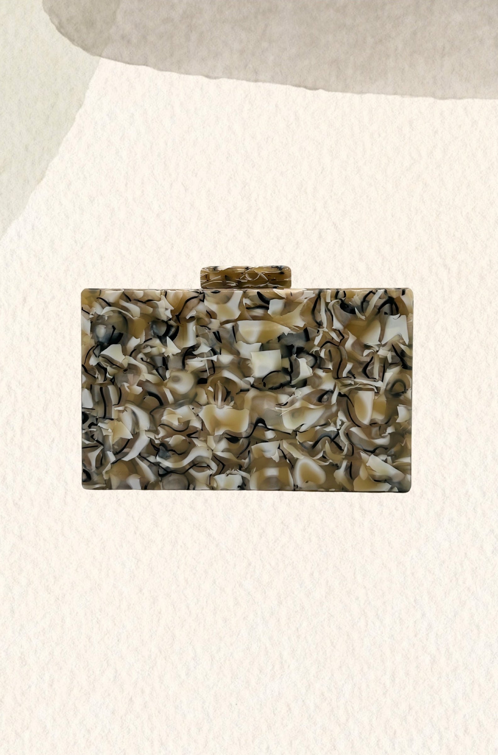 Cluth de nácar de efecto mármol en tonos marrones.